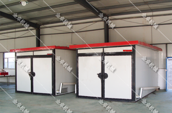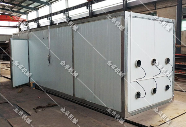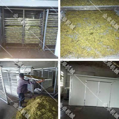 一步:將金銀花烘干房的預熱溫度設定為35-40℃左右,然后將擺好金銀花的物料架推入烘干房,然后提升5℃,加大排濕,時間5小時左右。