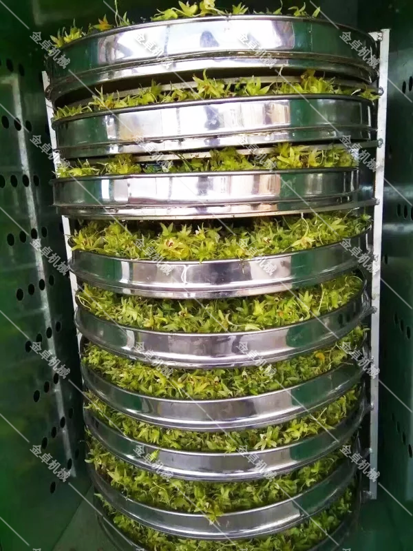 1、烘干箱為多層結構,循環翻轉,逐層烘干,高度模擬金銀花在陽光下的人工翻曬。