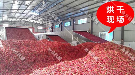 5.網帶式辣椒烘干機適用于透氣性較好的片狀、塊狀、條狀、顆粒狀或不規則形狀的辣椒干燥。網帶式辣椒烘干機處理量大,干燥溫度可調規模大。