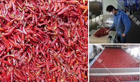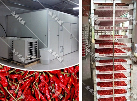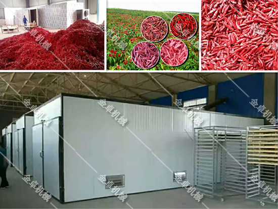 為了辣椒的運(yùn)輸存儲(chǔ)更方便,都需要在加工辣椒的過程中控制其水分含量。對(duì)辣椒進(jìn)行烘干是必要的工序。目前用于辣椒烘干主要設(shè)備是辣椒烘干機(jī)和辣椒烘干房(辣椒烘干箱),金卓機(jī)械在辣椒烘干工藝擁有辣椒現(xiàn)場(chǎng)干燥經(jīng)驗(yàn),保證用戶辣椒干燥的快速。