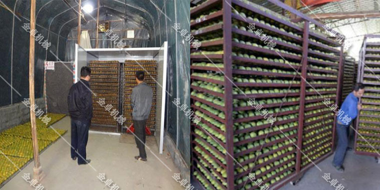 將剛采回的果實平鋪在室內通風陰涼處,可疊二、三層,3~4天翻動一次,讓其水分自然蒸發和內部糖分的轉化。在室內需要7~10天,使果實表面有百分之50呈現黃色,含水量蒸發去果重的百分之10~15,即可進入烤房烘烤。