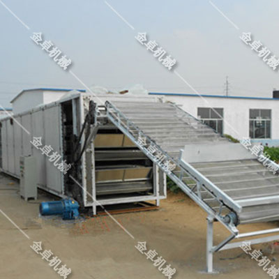 網帶烘干機可以廣泛的應用于冶金、化工、陶瓷、建材等行業,網帶烘干機生產線是食品和蔬菜進行干燥烘干理想的烘干設備之一,屬于一種利用鋼網作為傳輸帶,運載物料進行連續烘干的干燥設備,因此它比較適宜流水作業,金卓網帶烘干機輸送帶屬于一種網狀結構,因此可以烘干各種規則或者不規則的礦粉塊、成品球、食品、蔬菜等物品合適。
