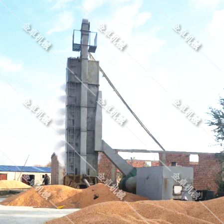 熱風爐產(chǎn)生的熱量→換熱器→冷空氣加熱→熱空氣→風機→管道→烘干塔→熱空氣與塔內(nèi)的玉米接觸→蒸發(fā)掉玉米內(nèi)多余的水分→成為理想成品